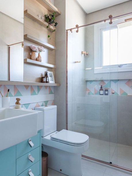 Em banheiros pequenos, opte por sistemas como o Versatik, que maximiza o espaço útil.